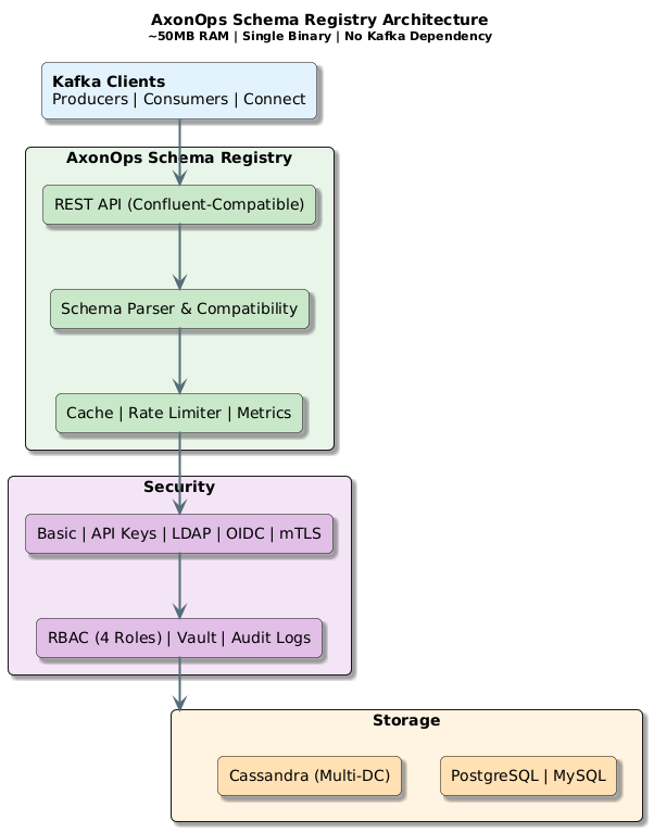 AxonOps Schema Registry represents a new generation of schema management—built for modern cloud-native deployments, with enterprise security included from day one, and without the operational overhead of Kafka-based storage.