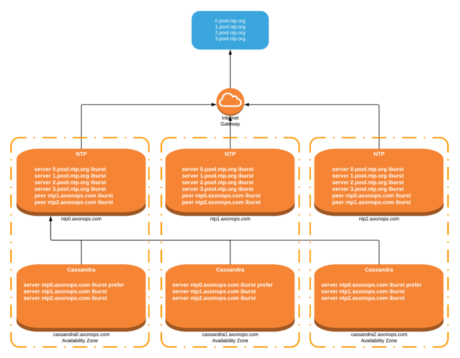 If you’re running Cassandra in an environment where you can’t rely on public or managed NTP services, setting up your own internal NTP cluster is a best practice.